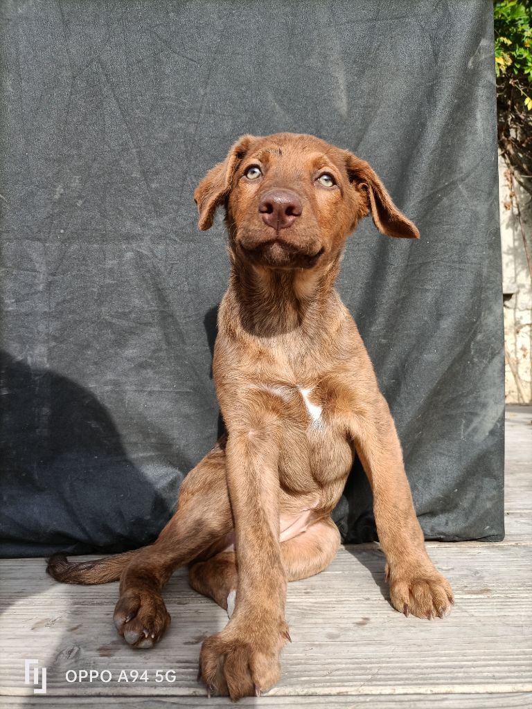 Topaze est la rigolote de la bande, elle à un comportement de soumission face à l'homme ou le chien et ne recherche que l'attention et les calins.